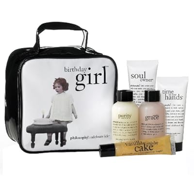 Celebrate the birthday girl with amazing grace perfumed shampoo, bath & shower gel 2 oz.; purity made simple one-step facial cleanser 2 oz.; time on your hands exfoliating hand cream 1 oz.; soul owner exfoliating foot cream 1 oz.; and vanilla birthday cake high-gloss, high-flavor lip shine .5 oz.